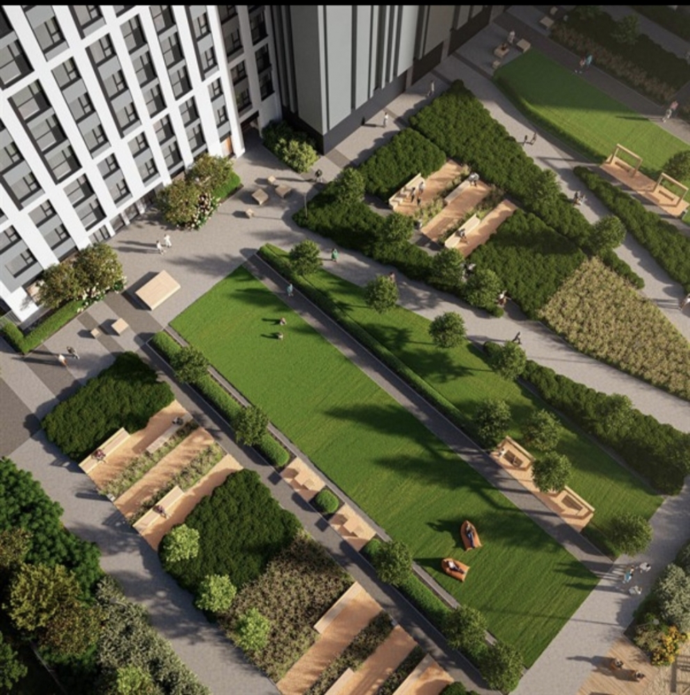 - Закрытый зелёный двор с детскими площадками для всех возрастов, воркаут и лаунж-зоны. Собственная управляющая компания с опытом работы более 20 лет на объектах премиум и бизнес-класса. Контроль доступа, видеонаблюдение и охрана 24/7.