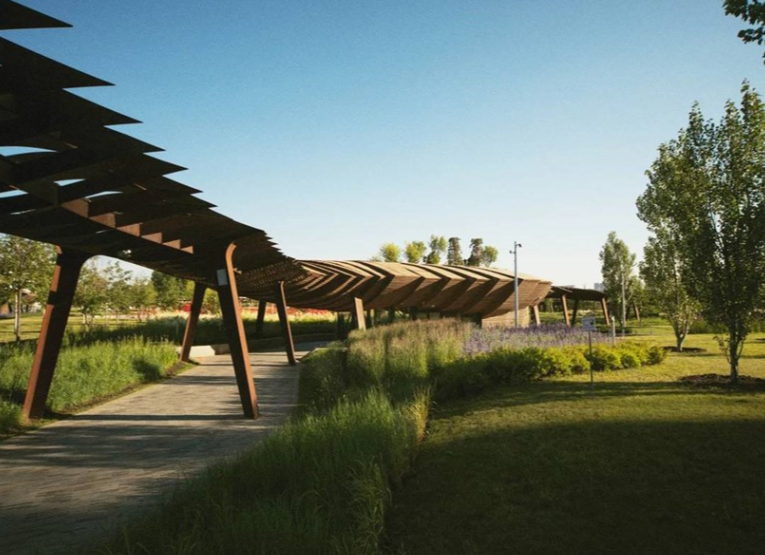Фасады природных оттенков, приятных глазу, — контрастный коричневый, спокойный бежевый. Выразительности и динамики зданию придают текстуры материалов, чёткости добавляют кованые линии балконов. Переменная этажность даёт больше света и воздуха — ничто не мешает наслаждаться видами. Многоуровневое озеленение с оригинальными деталями: сухим ручьём из камней, столами и навесами из натурального дерева, эко-тропой, которая настраивает на долгие прогулки.