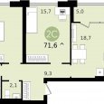 ЖК Тихий центр, 2-комнатная квартира, 58 м2, 7/18 эт.
