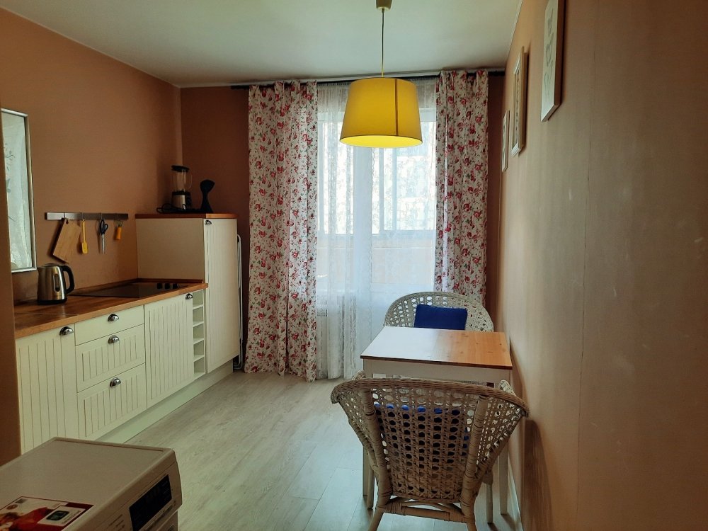 Уютная квартира с теплой атмосферой, остается добротная кухня. Хорошая планировка: большая квадратная кухня 11 кв.м., комната 20 кв.м.