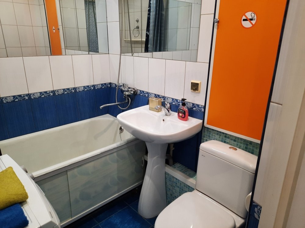 Отличное состояние санузла. Остается кухонный гарнитур, шкаф. Закрытый двор с детской площадкой, что очень удобно.