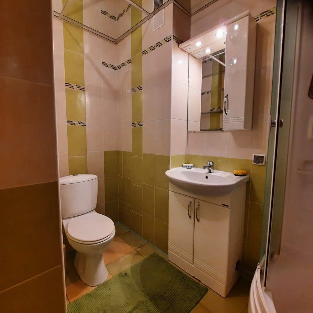 Большая квадратная прихожая. Комната реально 21,2 кв.м., что легко позволяет сделать зонирование. Ремонт делали для себя: окна поменяны, хороший ремонт в санузле, где установлена душевая кабина. В подарок Покупателям остается мебель и кухонный гарнитур с варочной поверхностью.