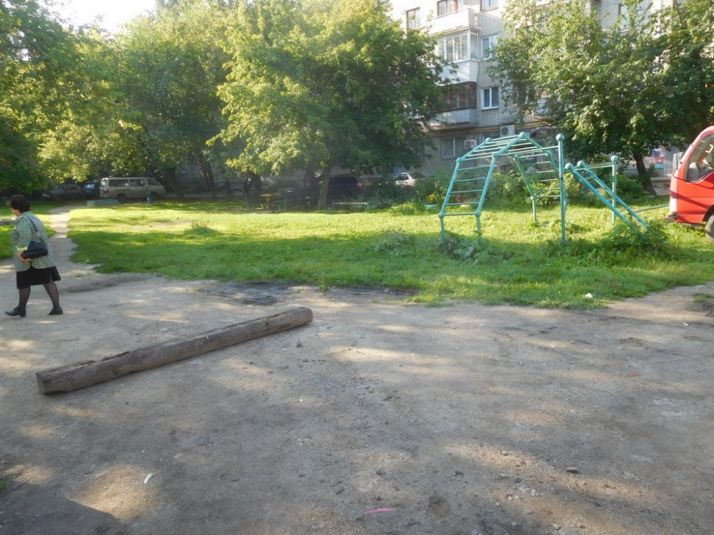 Уютный двор закрыт со всех сторон домами. Во дворе много высоких деревьев, которые создают тень и защищают от жаркого летнего солнца.