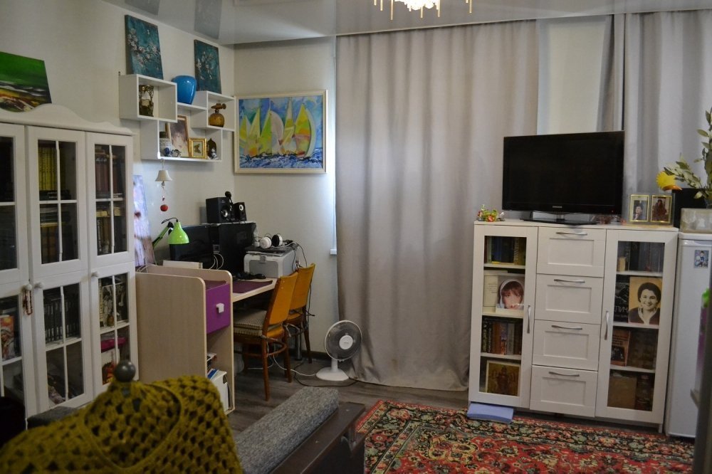 В квартире сделан косметический ремонт: натяжные потолки во всей квартире, на полу ламинат, в санузле кафель и душевая кабина, в подарок покупателю остается следующая мебель: кровать, раскладной диван, компьютерный стол, кухонный стол, полностью зеркальный встроенный шкаф-купе до потолка в коридоре, остальная мебель обсуждается с покупателем дополнительно.