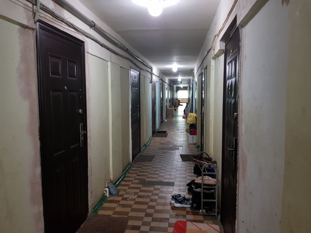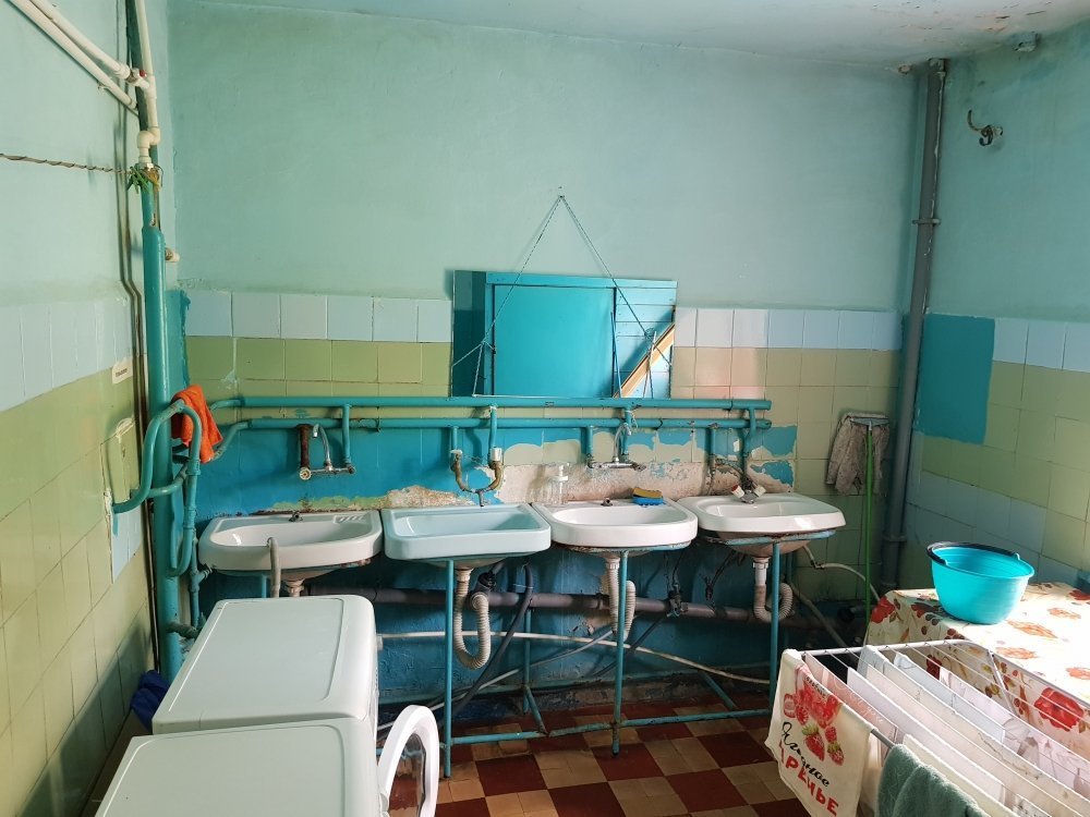В комнате есть зона прихожей и с другой стороны можно установить кухню. Санузлы распределены между жилыми комнатами. Есть место для установки стиральной машины в кладовой под замком. На первом этаже расположен душ, к которому есть доступ в любое время суток.