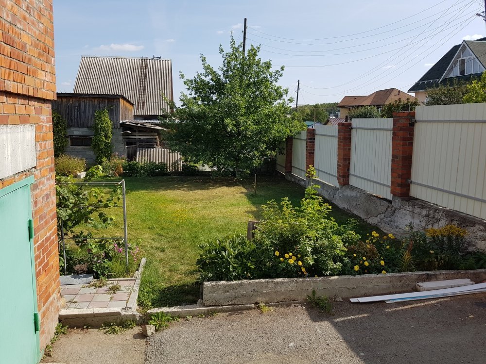 Участок разработан частично: есть плодово-ягодные насаждения-яблони, вишня, слива, виноград, клубника. Есть теплица из поликарбоната 4Х11. Вокруг дома разбит цветник. На большей части участка сделана зеленая ровная лужайка, на которой можно играть детям, устанавливать бассейн для купания, и шезлонги для отдыха.