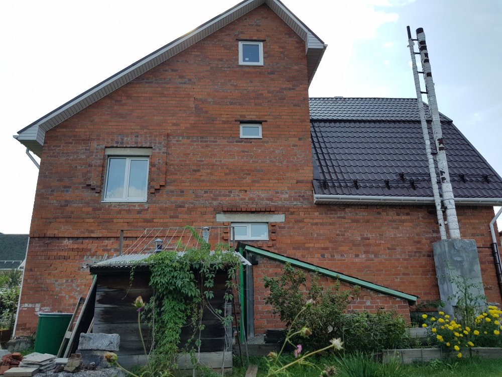 Материал стен дома кирпич, облицовка кирпич, фундамент бетонные блоки.
