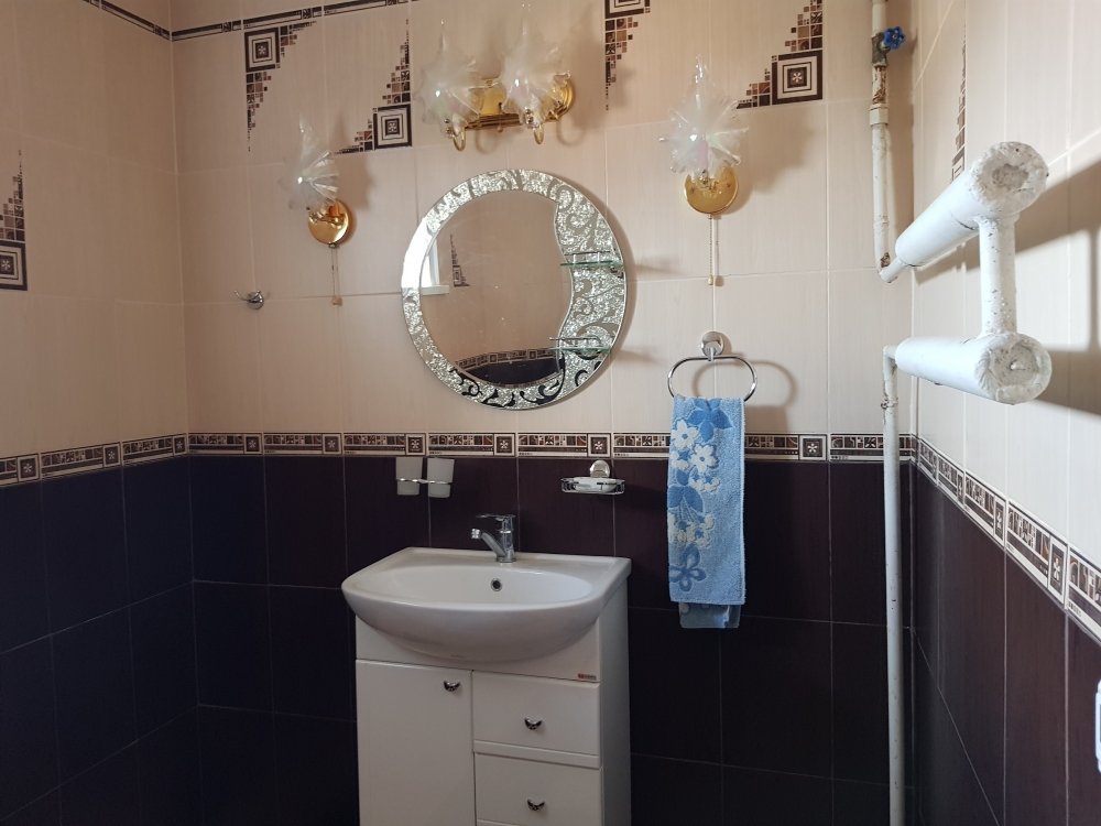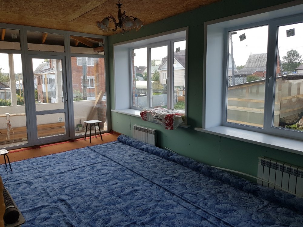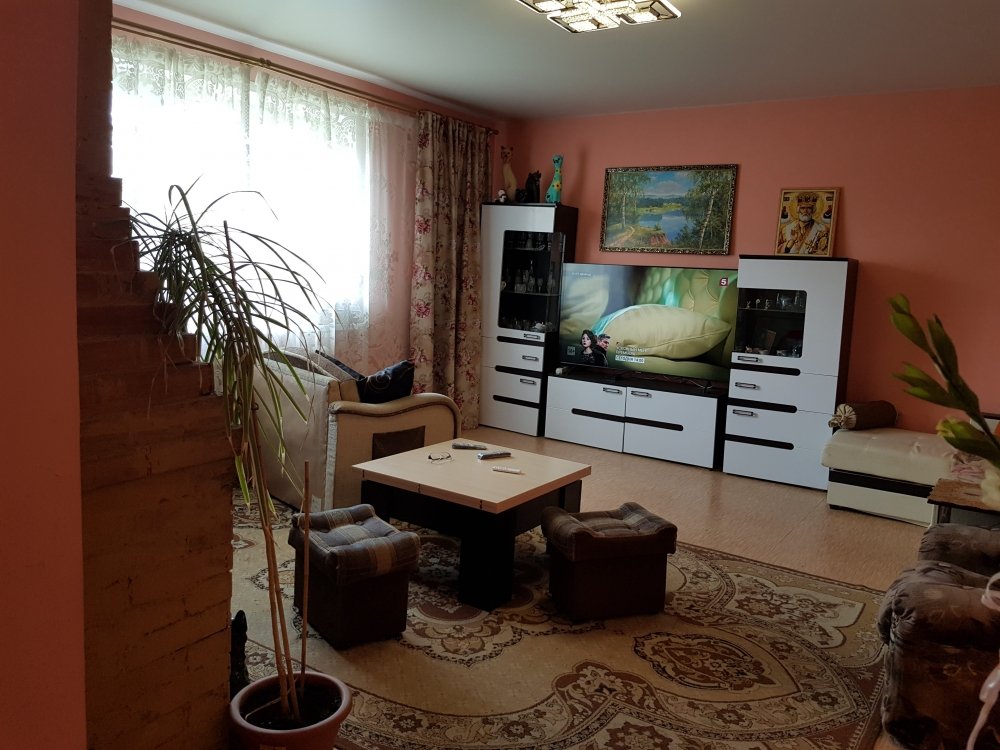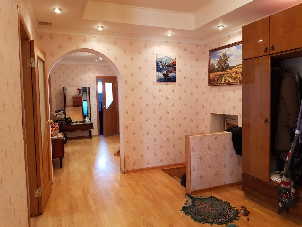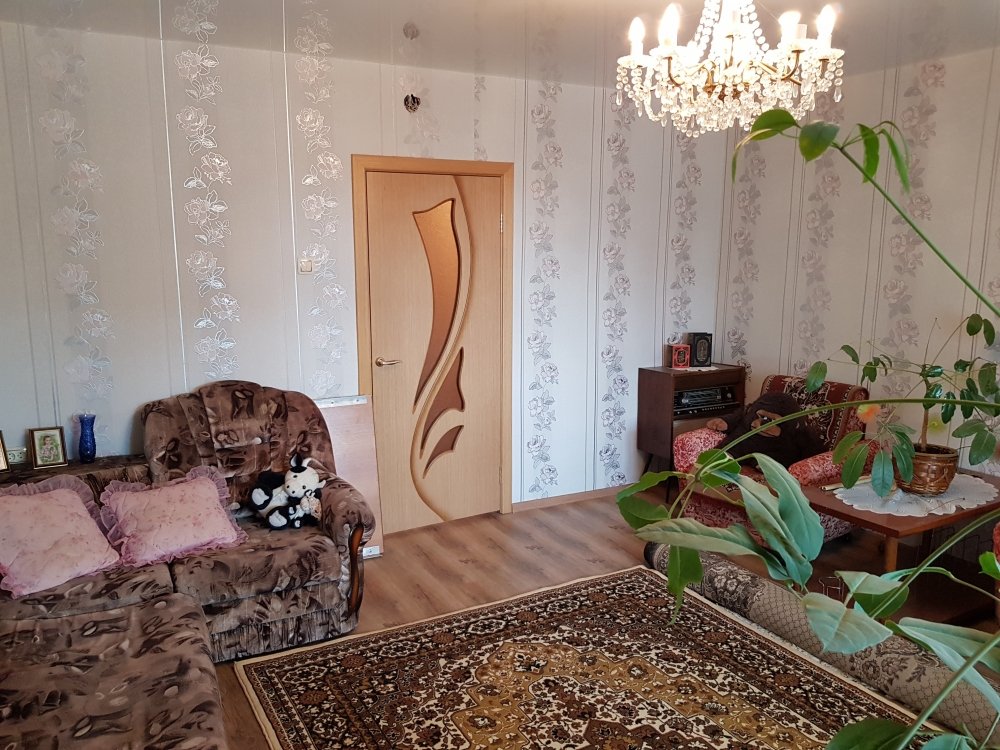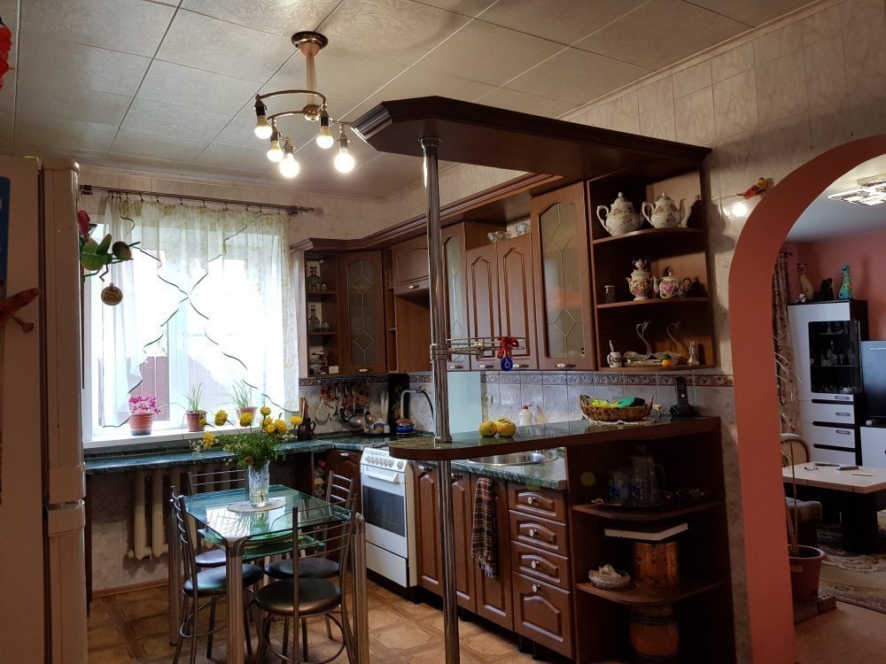На полу ламинат, натяжной потолок во всех комнатах, на кухне клеевые панели. Окна пластик во всех помещениях.
