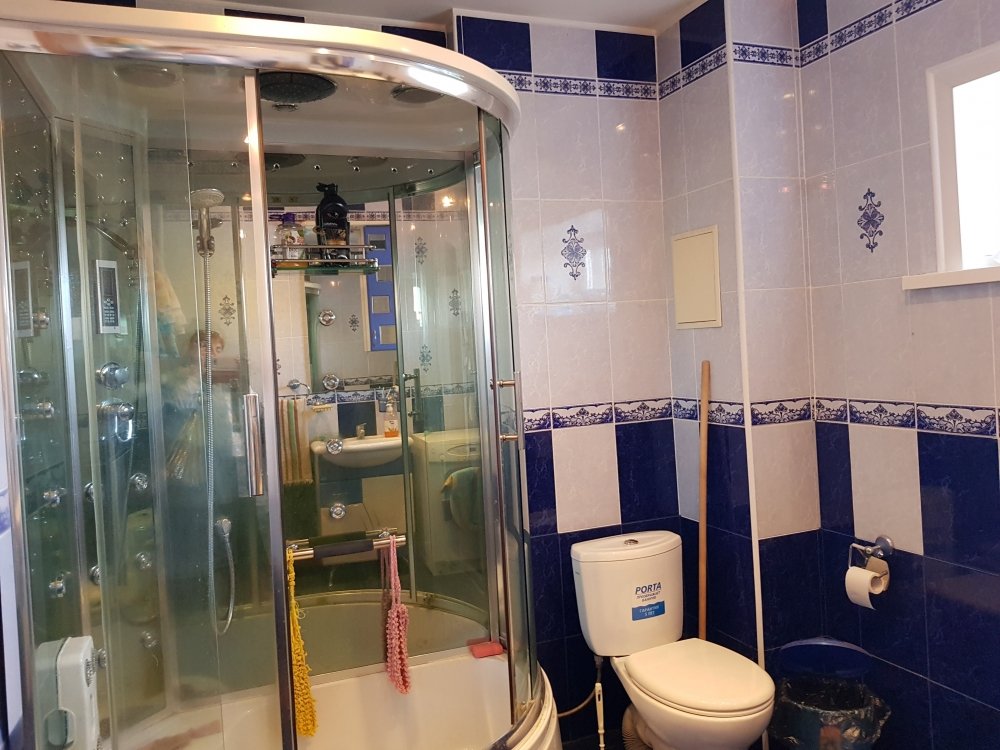 Два просторных санузла с окнами, на разных этажах. В одном из которых установлена душевая кабина. Имеется в доме помещение с коммуникациями под сауну и выходом на участок. Канализация - выгребная яма.