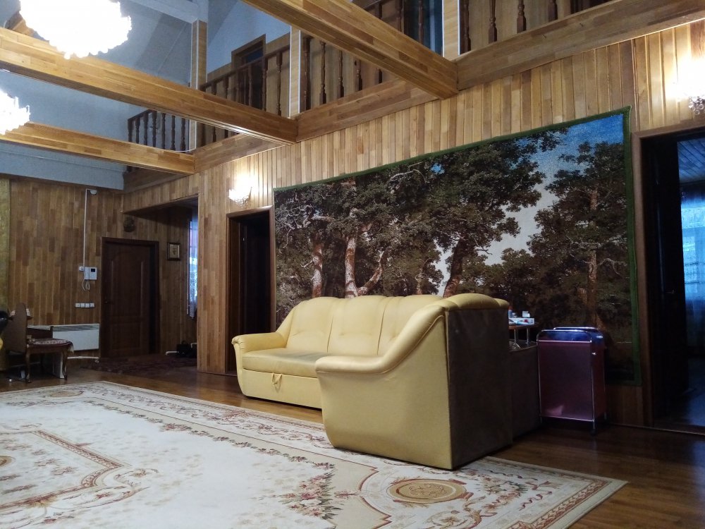 Цокольный этаж: финская баня, бассейн 4*5 м, глубина 2,5 м, комната отдыха, туалет, душевая; бойлерная, котельная, рассчитанная на 3 вида топлива, место для хранения овощей, выгребная яма.