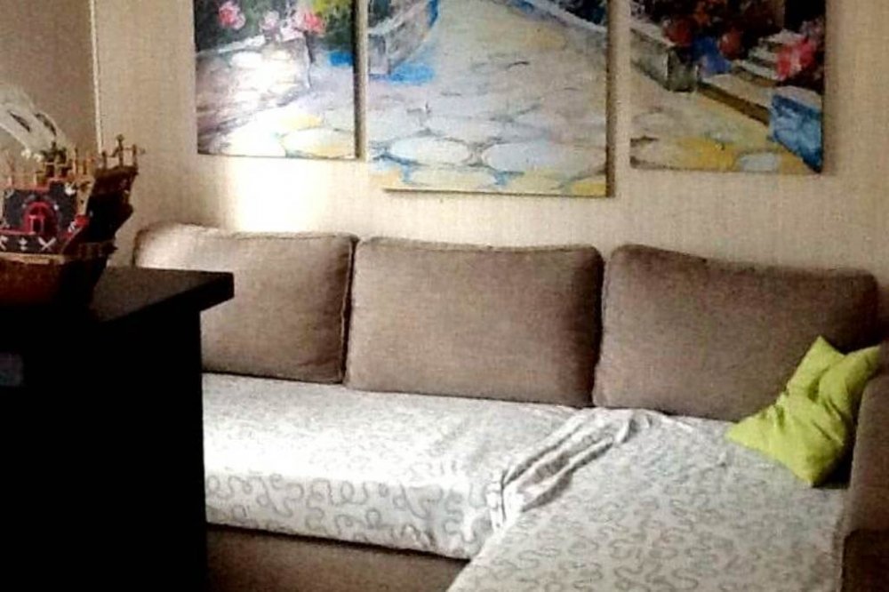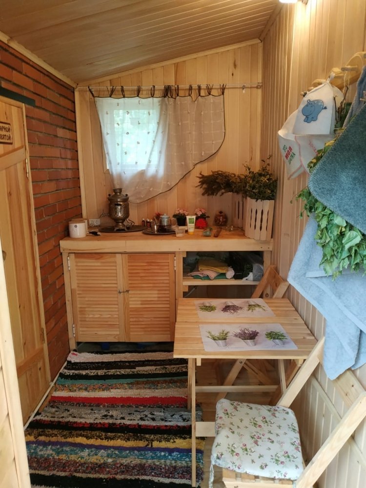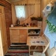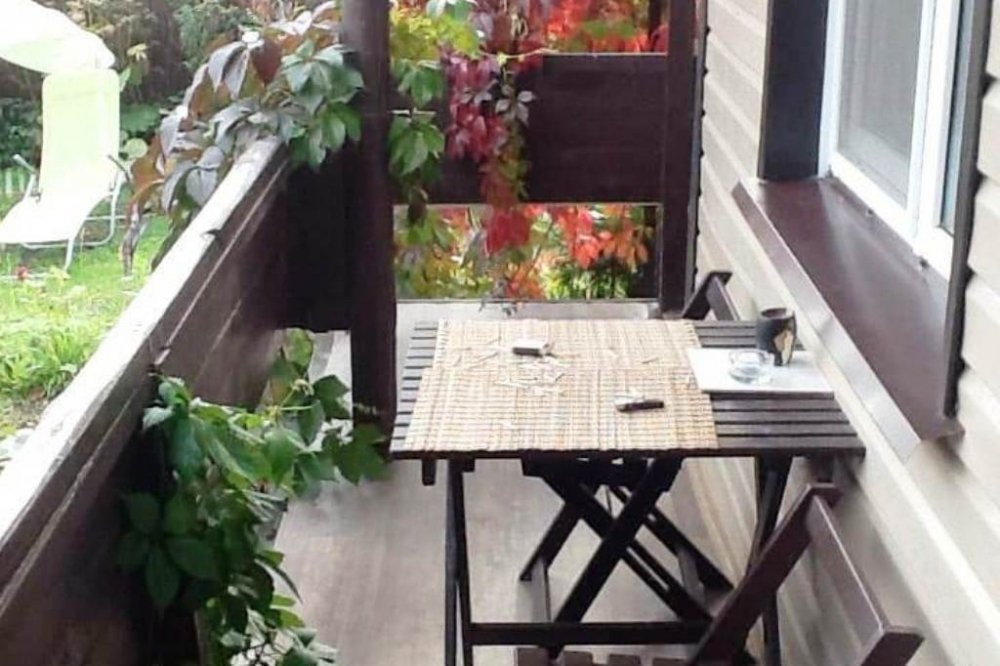 На первом этаже кухня, гостиная и санузел, на втором этаже - две изолированные спальни. Вся мебель в доме фирмы ИКЕА.