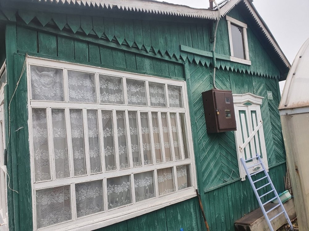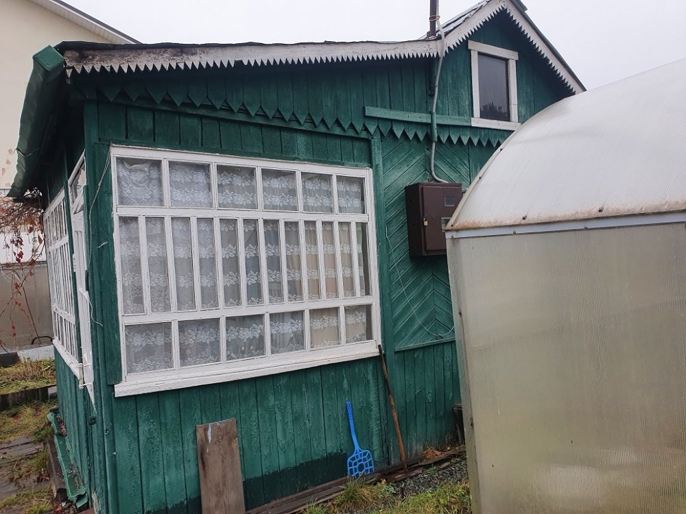 Дом площадью 20 кв. м выполнен из деревянных щитов и состоит из одной комнаты и веранды, в дом заведено электричество мощностью 220 Вт.